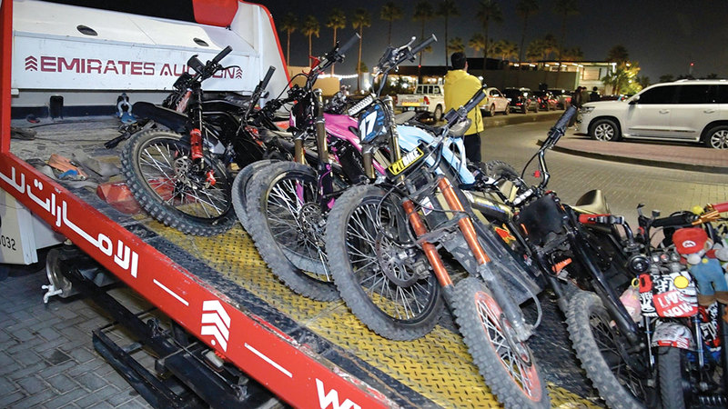 ضبطت القيادة العامة لشرطة دبي، ممثلة بالإدارة العامة للتحريات والمباحث الجنائية 90 شخصاً، وصادرت درّاجاتهم الكهربائية، واتخذت بحقهم الإجراءات القانونية اللازمة، بعد تورطهم في قيادة دراجات كهربائية على المسارات الرياضية في منطقة «كايت بيتش» وعلى الممرات المخصصة «للسكوترات»، الأمر الذي يُعد مخالفة صريحة وخطرة تهدد سلامة الآخرين، خصوصاً أن بعض الدراجات تتجاوز سرعتها الـ120 كيلومتراً في الساعة.