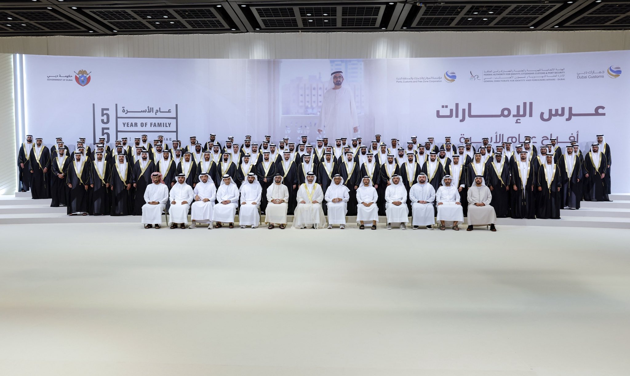 حضر سموّ الشيخ منصور بن محمد بن راشد آل مكتوم، رئيس مجلس دبي لأمن المنافذ والحدود، النسخة الثانية عشرة من العرس الجماعي الذي نظّمته الإدارة العامة للهوية وشؤون الأجانب في دبي “إقامة دبي” بالتعاون مع جمارك دبي، وذلك في مركز دبي التجاري العالمي، بمشاركة 127 عريساً، منهم 87 عريساً من موظفي إقامة دبي، و34 عريساً من موظفي جمارك دبي، و6 عرسان من موظفي مؤسسة الموانئ والجمارك والمنطقة الحرة، في مناسبة تعكس قيم التلاحم المجتمعي والدعم المؤسسي لبناء الأسرة الإماراتية.
