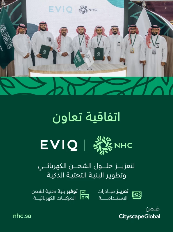 وأكدت NHC أن هذه الشراكة تأتي امتدادًا لجهودها في تعزيز الاستدامة وتوفير خدمات نوعية للسكان وزوّار الوجهات، فيما تسهم EVIQ بخبراتها في تطوير أنظمة الشحن الكهربائي وتقديم حلول متقدمة تواكب مستقبل التنقل، بما يسهم في ترسيخ الاستدامة في وجهات NHC، ويعزز من جودة الحياة بتطوير بنية تحتية ذكية تدعم أسلوب حياة أكثر مرونة واستدامة.